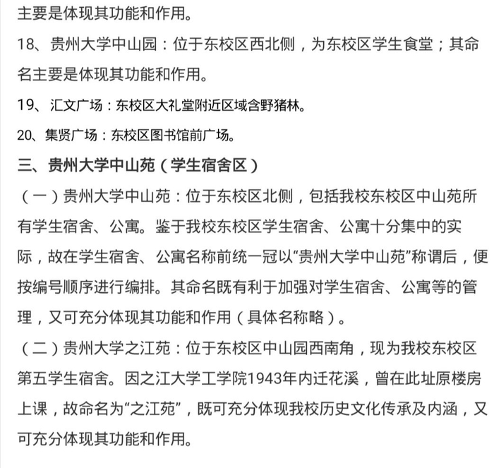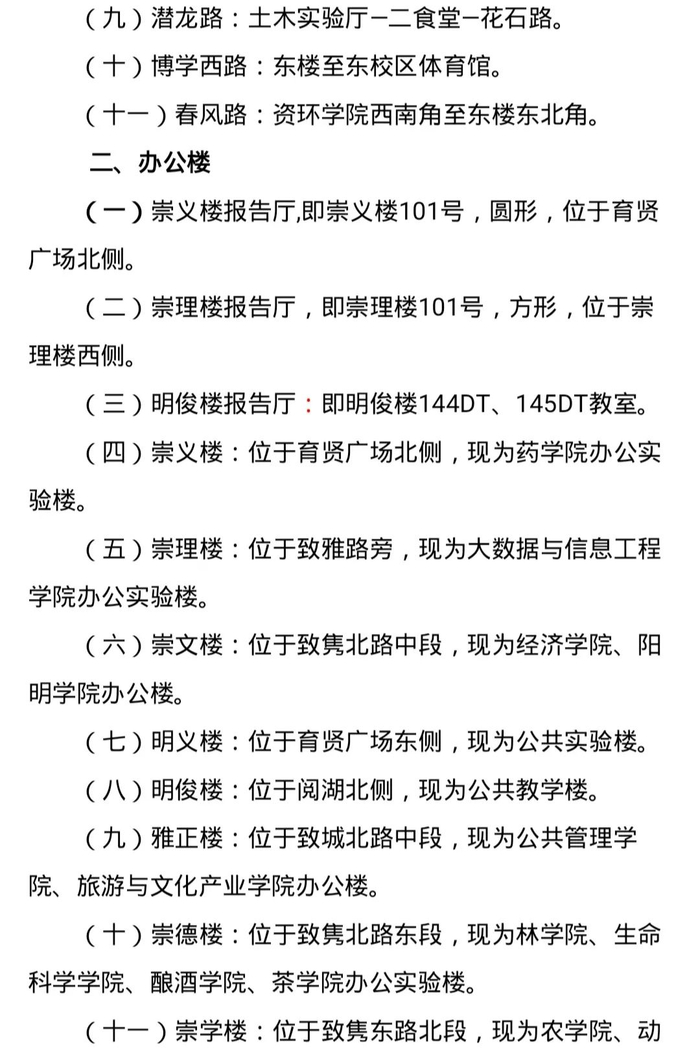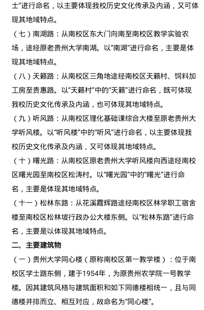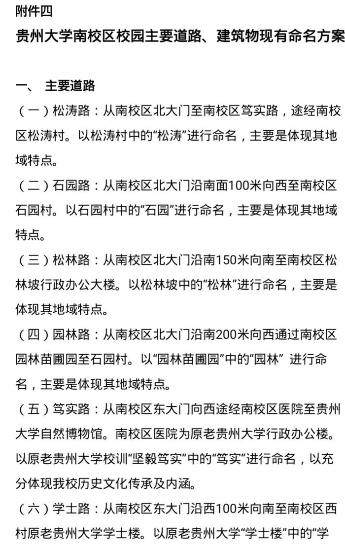 附件四:贵州大学南校区校园主要道路、建筑物现有命名方案