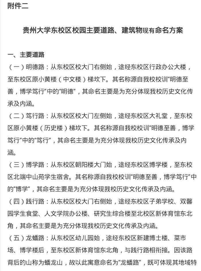 附件二:贵州大学东校区校园主要道路、建筑物现有命名方案