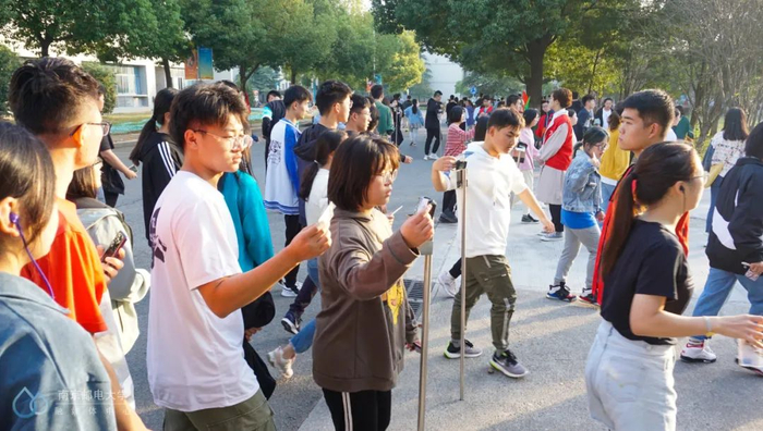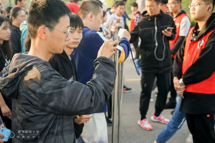 A:我们负责督促同学们有秩序地打卡,同时观察打卡的机器,机器出现问题时我们会及时调试。