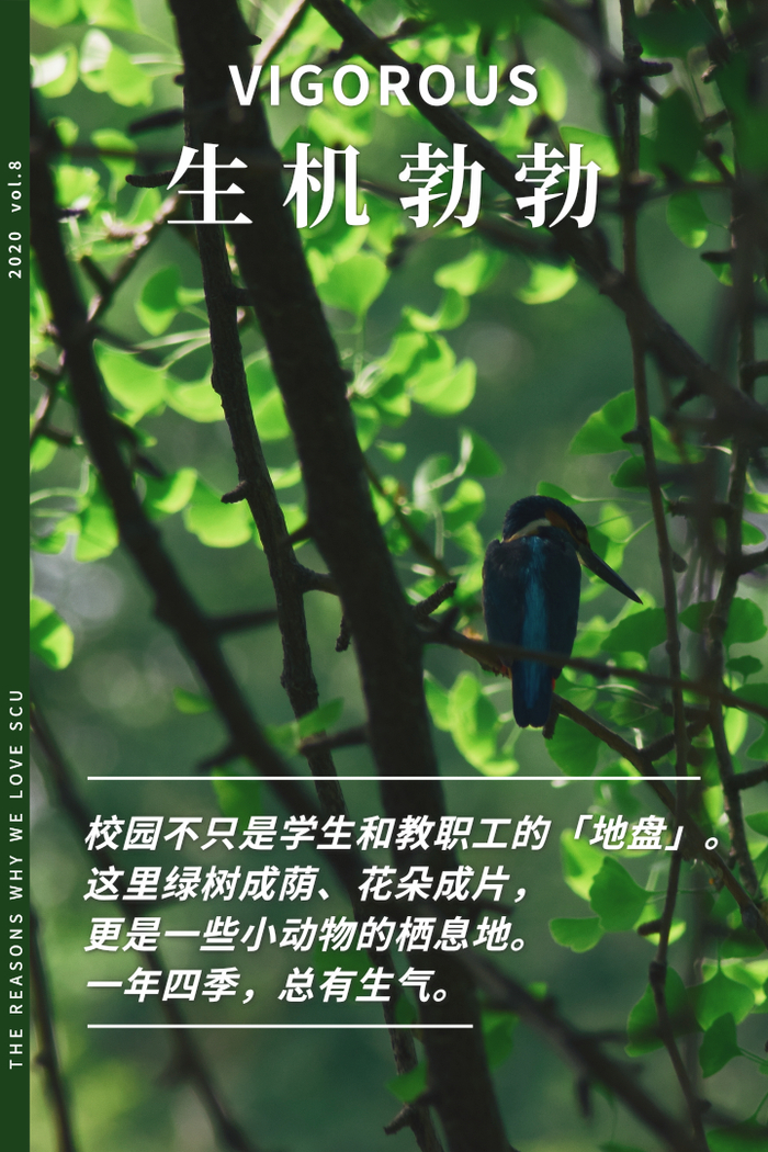 川大里韵味各异的景致,为学子们的读书治学多添了几分雅兴。绿色整洁的校园环境,也是不少小动物的栖息地。在一片生机中学习、生活,人自然而然也会变得朝气蓬勃。