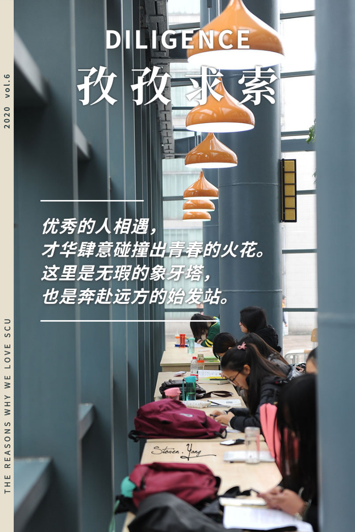 良好的学习环境中,勤奋刻苦的川大人从来不会缺席。图书馆闭馆时涌出的“回寝大队”、期末在湖边读书背书的同学、座无虚席的专家讲座现场......