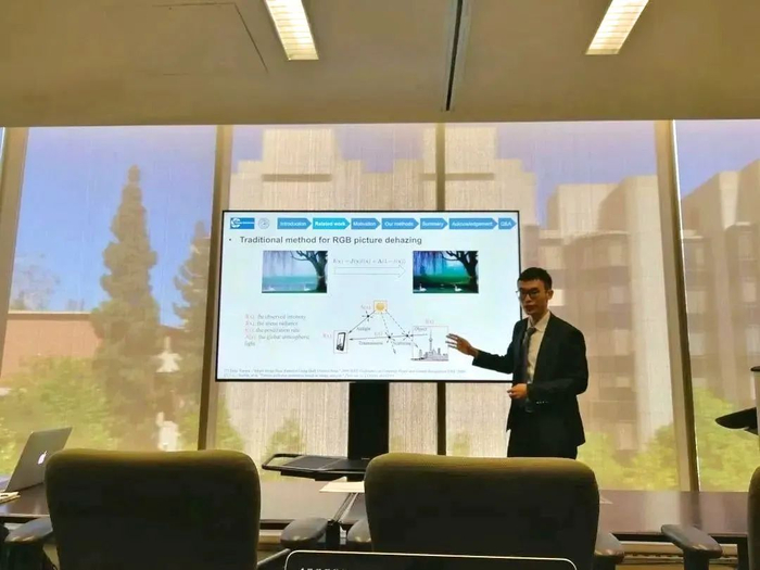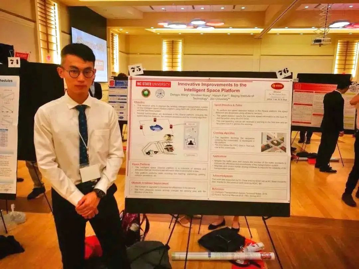 凭借卓越的学业水平和出色的英语成绩,范昊寅在大二时即破格入选吉林大学校级资助项目——北卡罗莱纳州立大学暑期科研项目(NCSU-GEAR)。这之后,范昊寅跟随IEEE fellow周武元教授,开展了为期5周的针对无人汽车仿真平台的研究。项目结束时,他完成了题为《Innovation Improvements to the ISPACE Platform》的学术海报,获得了导师及课题组研究人员的高度认可。凭借着自己在科研项目中的出色表现,他在资助答辩环节中以学校第一名的成绩获得了全额资助。2019年暑假,他再接再厉,经过材料筛选、全英文面试等层层选拔,成功入选加州大学洛杉矶分校暑期科研项目UCLA-CSST,并同时获得UCLA提供的CSST奖学金和吉林大学的全额资助。丰富的海外科研经历极大地激发了他的科研热情,激励他在科研道路上勇往直前