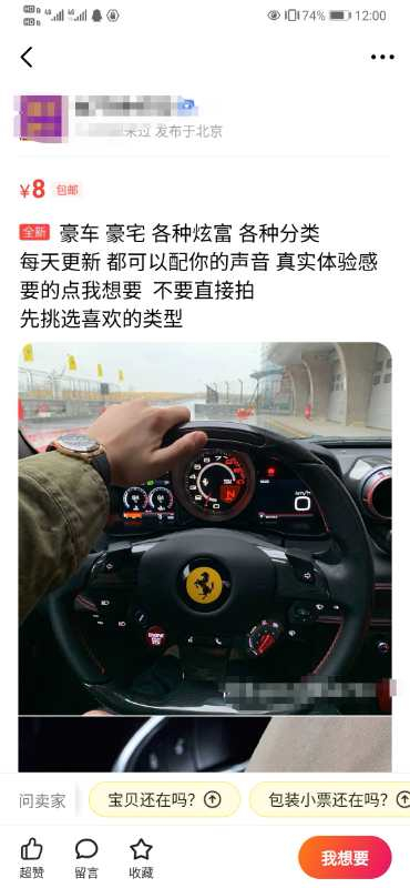 豪车名表一应俱全 38.8元的视频“装富”服务