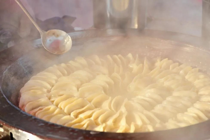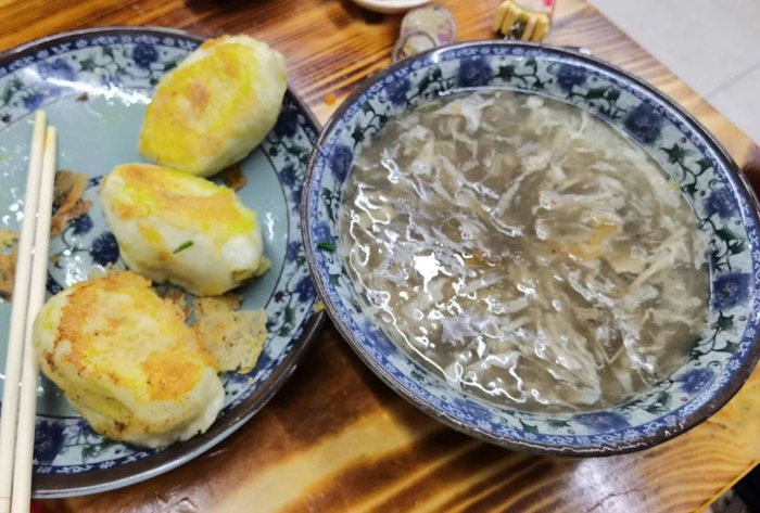 徐州早餐的灵魂就是一碗滚烫的辣汤滴上几滴香油,配上二两底面煎的焦黄的韭菜煎饺,佐一碟切成长条的辣疙瘩,不是稀有贵重的食材,却也暗自涌动着徐州人的血性。热气腾腾的一天,由“吸溜”一口辣汤开始。