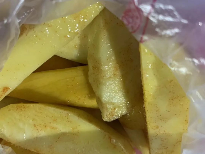 锅包肉用猪里脊肉和淀粉,经过油炸和烹饪制成,出锅时可以用胡萝卜丝或香菜丝做点缀。外观红白相间,肉质外焦里嫩,口感微酸微甜。