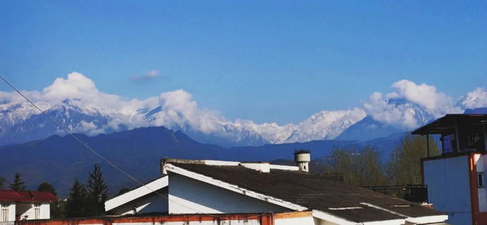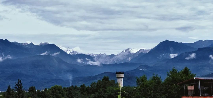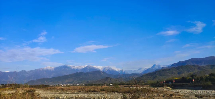 今年因为疫情推迟返校,待在家的这段时间里,我也发现了家乡不一样的美。彭州四面环山,其最高峰九峰山海拔4812米。不经意的晨昏,目光穿越锦官城的轻云薄霭,与九峰山对视,便可看到山顶上的积雪,积雪与山峰上的云雾融合,画面美得让人难以置信。根据统计,成都上半年有37天可以看见雪山,在成都遥望雪山,已成为四川成都空气质量改善的亮丽名片。