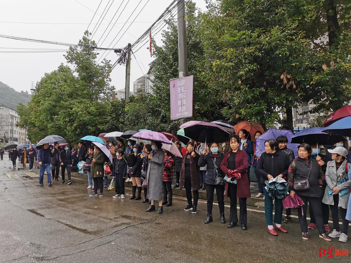 滚滚嘉陵皆是泪,默默苍山尽含悲。10时30分左右,载着李雨阗灵柩的灵车在警车护卫下,沿着北门大道、人民中路、兴贤街、滨江路、东城派出所等路段缓缓前行,在英雄牺牲的梨乡故土,李雨阗的生前战友拉着“忠诚践誓言、浩气贯长虹”“战友李雨阗,一路走好”等横幅,泣不成声送别亲爱的战友最后一程。自发前来为英雄送别的群众在李雨阗灵车经过的道路两侧肃穆站立,他们胸带白花,或眼含热泪、或相拥而泣,依依送别梨乡英雄。现场汽笛长鸣,哭声阵阵,汇聚起了无尽悲伤。