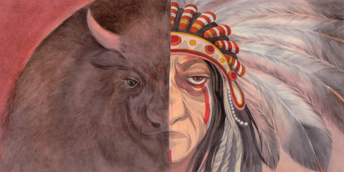 这是野牛和“野牛人”的面容重合的一刻。我们此刻所感受到的强烈冲击,是文学面对强势文化吞食弱势文化时所漫涌的悲悯。为什么要悲悯,为什么有悲悯?因为我们不知道,下一刻、未来的某一刻或者就在此刻:我们的自己面容是否也会重合其上?