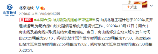 原标题: 本周六房山线燕房线提前结束运营