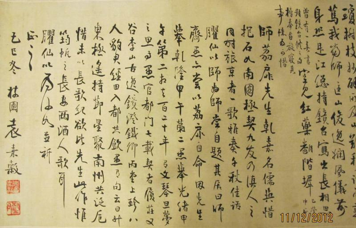 袁嘉谷先生在书法艺术上,也颇有造诣。自创一体、笔力坚韧、气势刚健,被称为“袁家书”。每逢游览名胜古迹,他常常泼墨题字。昆明的翠湖、大观楼、黑龙潭、西山等地,都有他书写的匾联和石刻。
