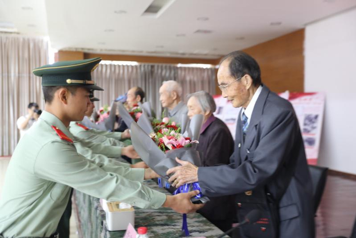 “把最灿烂的鲜花送给最可爱的人……”下士段章越在活动前几日被选为官兵代表,担负活动中向老兵献花的任务。在此次活动中,该支队从入党积极分子中挑选出7名代表,通过向老兵献花、介绍支队情况等方式全程陪在老兵身边,让官兵近距离感受老兵身上的抗战精神。“这是一场不能忘却的伟大胜利,志愿军将士英勇顽强、舍生忘死的精神,是留给我们最为宝贵的精神财富。”段章越说,在老兵身上,他感受到了人民军队压倒一切敌人而决不被敌人所屈服的伟大气概,心灵受到深深震撼。