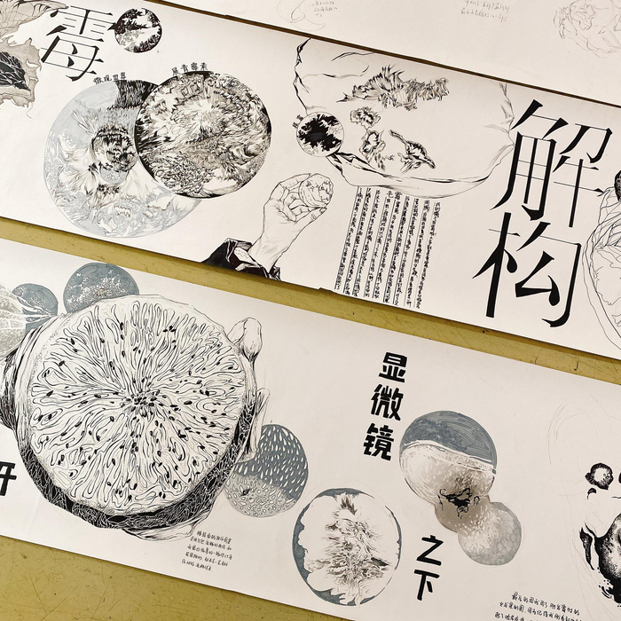但现实是,学生接受到的针对观察力方面的训练很少,“我们设计的基础课程就上一个学期,时间很短。第二学期就要开始接触设计的专业课程。所以,就想利用三周的时间,让学生观察一个自然物象的变化,然后记录下来。”陈永群表示,自然物象最有意思的点在于它一直在发生变化,而且不同的物象变化速度不一样,所以在锻炼学生观察力方面十分有用。