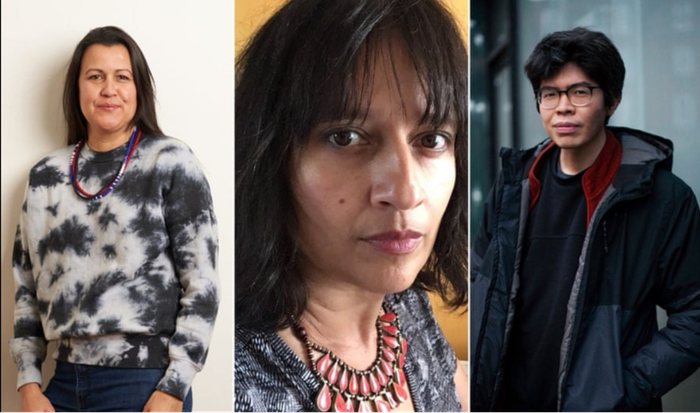 三位入围者,从左至右分别是娜塔莉·迪亚兹(Natalie Diaz)、巴努·卡皮尔(Bhanu Kapil)和威尔·哈里斯(Will Harris)。