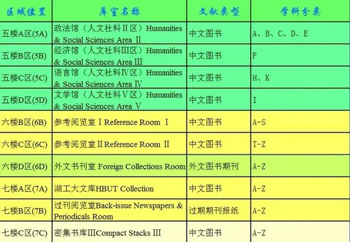 图书馆建有2个以创新创业培养为目标的学习共享空间、1个馆企合作创新就业学习空间;设有以轻工馆、艺术馆、建筑馆、机电馆等为特色的10个外借书库;设有考试阅览室和参考阅览室等6个阅览室、3个密集书库、1个湖工大文库、1个容纳400余人的多功能报告厅,还建有室内外绿地花园及茶社、咖啡书屋。