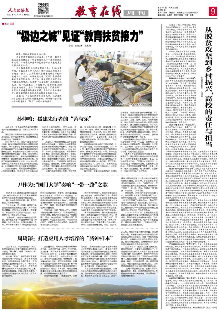 今天是第七个全国扶贫日,也是第28个国际消除贫困日。10月14日,央媒《人民政协报》以整版篇幅,呈现地大在脱贫攻坚中的风采和作为。整个版面,由两篇文章组成,分别是:通讯《“极边之城”见证“教育扶贫接力”》,校长王焰新院士署名文章《从脱贫攻坚到乡村振兴,高校的责任与担当》。以下为报纸版面全文:
