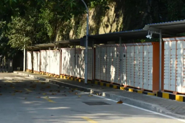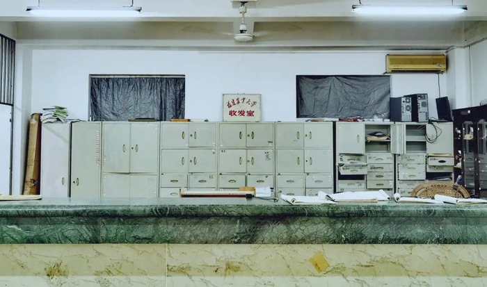 屏山路上见得最多的就是快递智能收发点,沿路由北向南是一排排智能快递柜。这样一条具有现代气息的路,在水光山色的掩映之中,让我们可以一瞥校园服务的从容运转。师生你来我往,或寄送,或领取,一个个包裹小可爱,无论是等待着被拾起、被编号、被暂存,还是被送出、被领取,它们都有一个共同的印记,那就是地址一栏,均写着醒目的“福建农林大学屏山路东侧”字样。