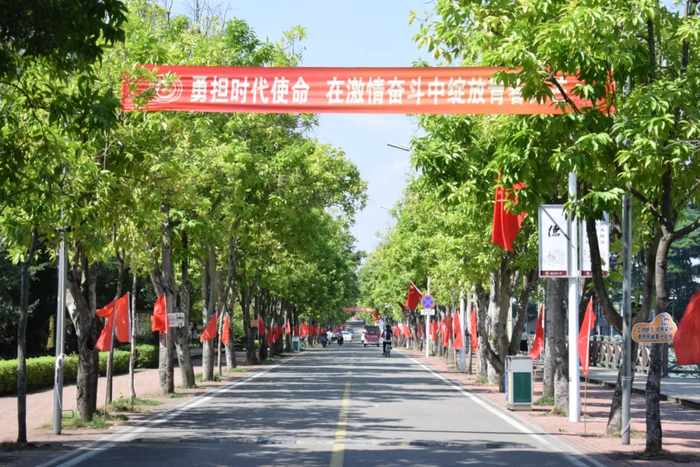 魁岐路沿途不仅有供师生学习的李常盛图书馆,也有环境怡人的中国优秀传统文化主题公园,还有场地广阔的北区篮球场。