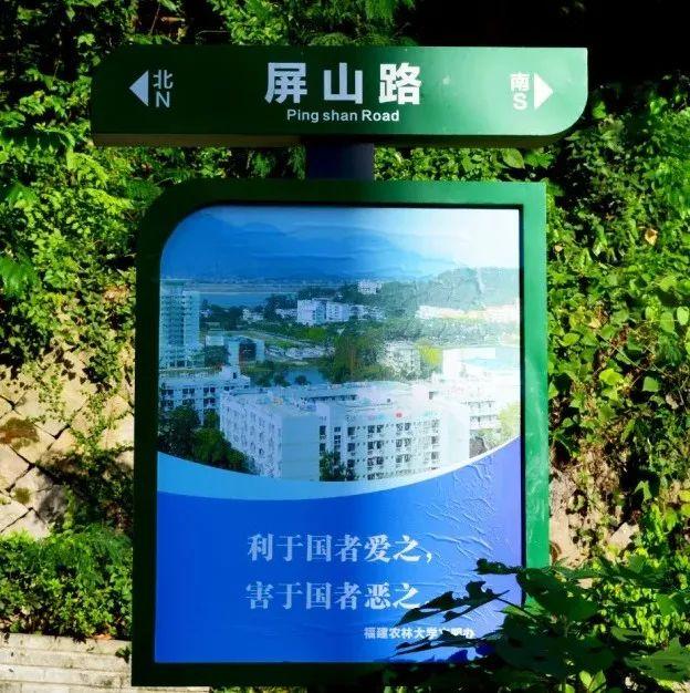 屏山路中的“屏山”二字,因农林大前身之一的福建省立农学院曾迁校福州,择定当时的屏山南麓、中山路北端为校址而得名。