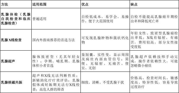四种乳腺癌筛查方法对比