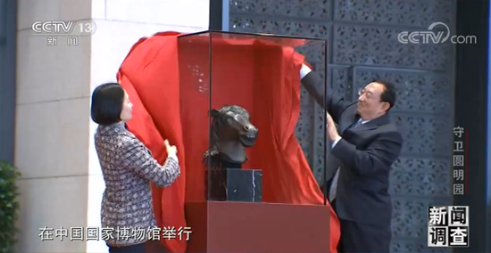捐赠仪式现场,国家文物局宣布:经与捐赠者澳门爱国企业家何鸿燊先生协商,“马首”铜像,将交由圆明园管理处展陈、收藏。