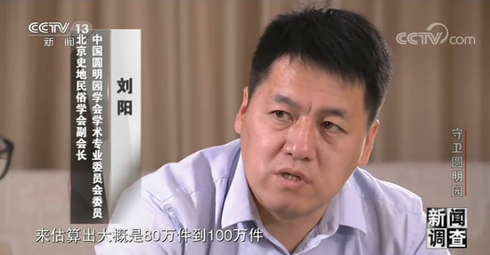 中国圆明园学会学术专业委员会委员 刘阳:我们只能通过故宫和颐和园,还有承德避暑山庄当年陈设的比例和圆明园的规模,来估算出大概是80万件到100万件。
