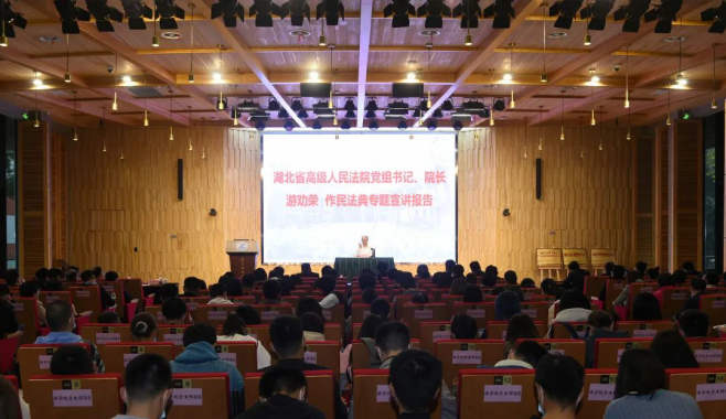 仪式结束后,游劝荣院长为华中科技大学的师生作了民法典专题宣讲报告,围绕民法典的起草过程、重大意义、基本原则、主要内容、争议观点、制度创新、学习贯彻等方面内容,阐述了民法典是一部固根本、稳预期、利长远的基础性法律。
