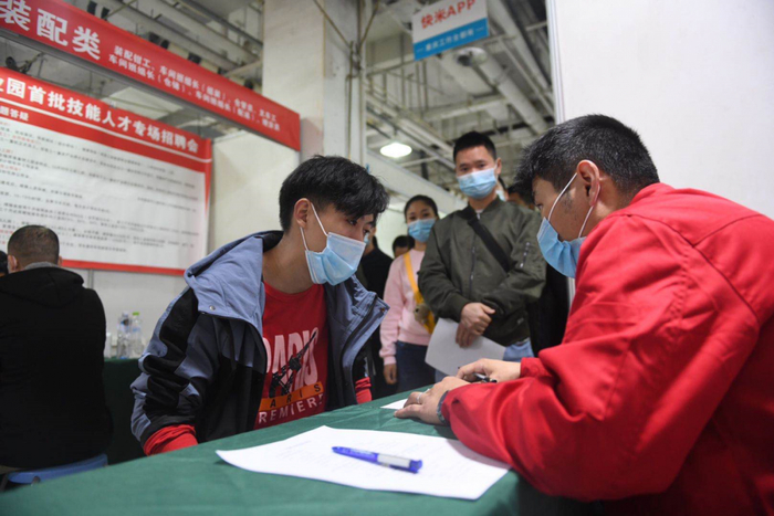 “入职后有哪些福利保障?”“工作时长如何?”“什么时候入职?”......招聘会现场人气火爆,各个招聘展位前都排满了前来咨询的求职者。