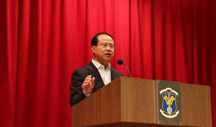 澳门中联办主任傅自应出席粤华中学升国旗活动