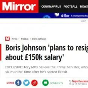 《镜报》援引多名英国保守党议员爆料称,约翰逊计划于6个月后、即明年春天辞职,此前,他曾多次在私下抱怨,首相的年薪只有150402英镑,而他不能只靠这些钱生活。但议员们也表示,约翰逊首先希望用这6个月的时间去处理英国脱欧问题,同时带领英国走出新冠疫情的影响。