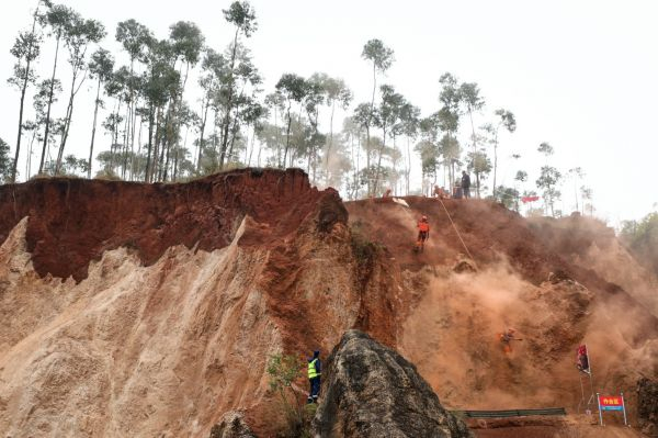19日,森林消防队伍第二届“火焰蓝”灭火专业技能尖子比武活动进入第三个比赛日,图为特殊地形点烟处置科目比武活动场。