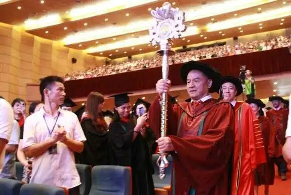 ▲毛蕴诗教授在中山大学学位授予仪式上执权杖入场