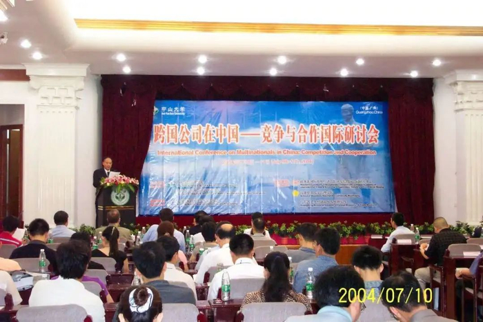 ▲2004年,毛蕴诗教授在“跨国公司在中国——竞争与合作国际研讨会”上作主题演讲