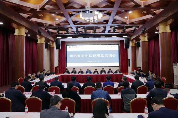 16日上午,召开专家组意见反馈会,教育部高等教育教学评估中心专业处副处长何菁菁,专家组全体成员,校党委书记李旭锋、副校长王进军,学校相关职能部门负责人,文学院领导班子成员,部分师范生培养学院(部)领导,部分教师代表参加会议。会议由专家组组长傅康生主持。