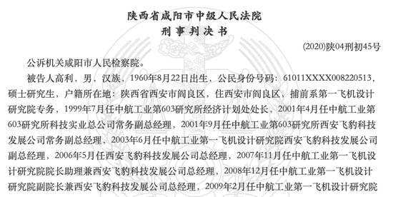 原标题:官方披露,“中航一飞院”一名副院长获刑