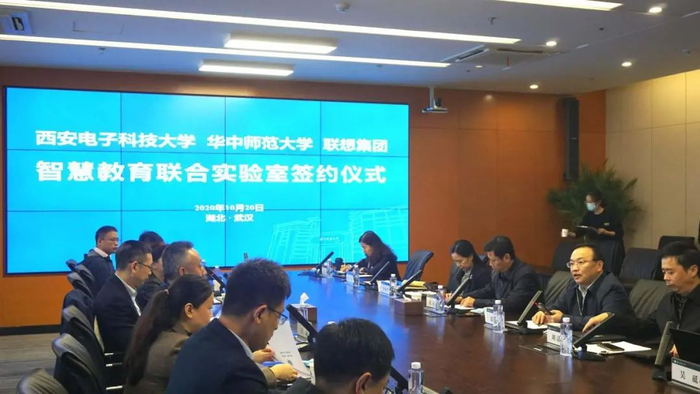 10月20日上午,西安电子科技大学、华中师范大学、联想集团在华中师范大学南湖综合楼1182会议室举行签约仪式,共同成立智慧教育联合实验室,协同开展智慧教育领域的前沿技术研究,促进智慧教育行业蓬勃发展。