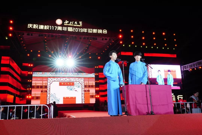 有了此次的创作经验,他的创作便逐渐变得容易了不少。2019年西北大学校庆晚会上,王梓然与搭档合作演出了《西大漫谈》。在作品的创作过程中,王梓然颇费心血。他说:“我吃饭睡觉都在想稿子应该怎么写,不想错过每一次的灵感。”如何褒贬结合,真实而生动、有趣地介绍西大,就是王梓然创作的“重中之重”。敲定了这些细节,才呈现了一个完美的校庆舞台。他说:“也正是这次的创作,才让我真正感受到了西大的自由、开放、包容。”
