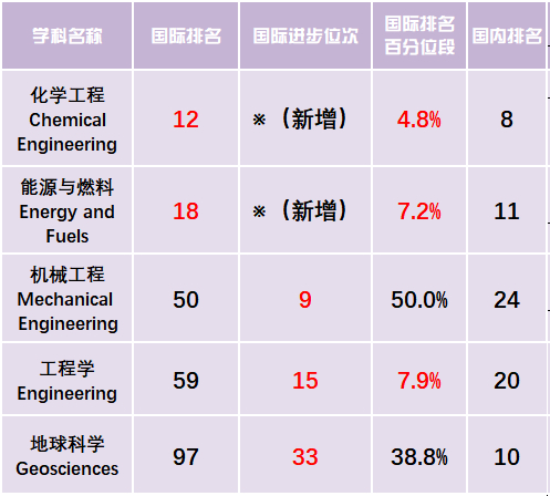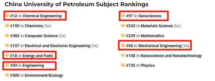 US News同时发布了2021世界大学学科排行榜,中石大共有13个学科上榜,其中5个学科进入全球百强,化学工程(Chemical Engineering)以83.9分位列全球第12名,能源和燃料(Energy and Fuels)以76.1分位列全球第18名,双双跻身全球20强。另外,中石大工程学位列全球前7.9%,在上榜的118所中国大陆高校中位列第20名,国际排名第59名,较去年提升了15位。