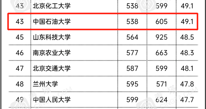 《美国新闻与世界报道》(U.S.News & World Report)于2014年10月28日首次发布“US News 世界大学排名”,根据大学的学术水平、国际声誉等指标得出全球最佳大学排名,是继US News本科排名、US News研究生院排名之后,推出的具有一定影响力的全球性大学排名。US News世界大学排名与上海软科ARWU世界大学学术排名、泰晤士高等教育世界大学排名、QS世界大学排名被公认为四大较为权威的世界大学排名。根据US News Education官网显示,排行榜未区分中国石油大学(北京)与中国石油大学(华东)为两个独立办学实体这一情况,榜单中所有数据依据和排名结果视为两校共享。