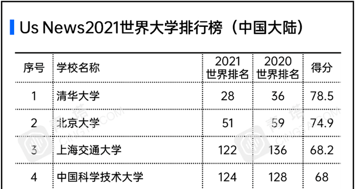 来源:中国石油大学北京10月20日,US News发布2021世界大学排行榜,榜单涵盖全球81个国家和地区的近1500所院校,中石大位列中国大陆高校第43名,全球排名第538名,较去年提升了67位。2018年,中石大全球排名第807名,在入榜高校逐年增加的情况下,三年间排名提升了269位,进步明显。