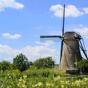 “小孩堤防”是荷兰西部南荷兰省的一个村庄,部分属于新莱克兰,部分属于阿尔布拉瑟丹,坐落在莱克河与诺德河交汇处。为了排水,1740年这里建立了一个由19架风车组成的荷兰最大风车系统。1997年,小孩堤防风车群被列入世界文化遗产,目前已成为荷兰最知名的景点之一。站在风车下边,巨大的旋转风叶在耳边沉稳有力地转动,非常震撼。