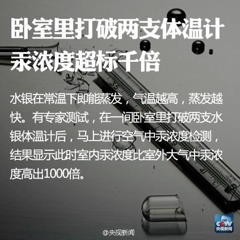业内专家表示,一支水银体温计摔碎,一个15平方米的房间的汞的浓度会很快高出近百倍,即使通风也需要一个月才能恢复。在国外,打碎温度计是件很严重的事,不仅要上报医院管理委员会,委员会还要专门打一笔钱来处理温度计泄露出来的水银污染 。
