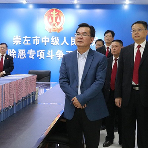 10月20日,崇左市委常委、政法委书记陶辉到崇左中院开展扫黑除恶专项斗争工作调研,调研以察看台账和召开座谈会的方式进行。