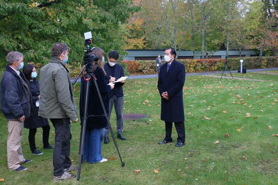 海外网10月22日电 据中国驻瑞典大使馆官方网站消息,10月21日,桂从友大使就瑞典5G建设涉中方企业有关问题在使馆接受瑞典电视台新闻节目和《当前新闻》栏目专访。