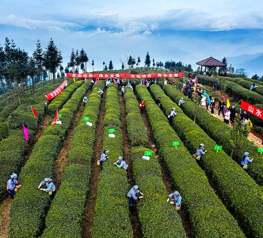 马边劳动镇福来村茶园吸引众多游客前来观光游览。