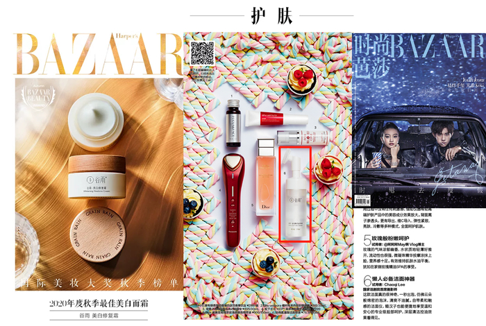 正是因为这一份匠心和优秀的产品,谷雨多次被《时尚芭莎》、《ELLE》时尚杂志推荐,获得众专业美容编辑的认可。