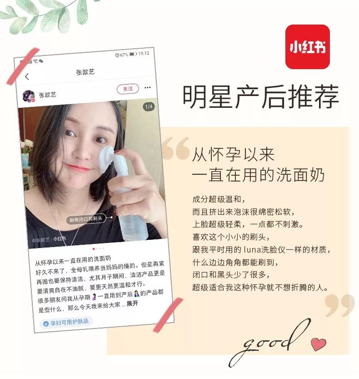 就连刚生完宝宝的张歆艺都迫不及待地在小红书给大家安利这一款孕妇可用的无防腐洗面奶。