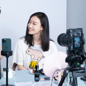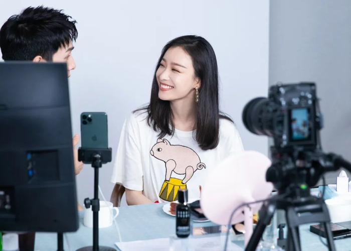 在直播间镜头下的倪妮,自然大方,简单的妆容下,透着干净无暇的脸,少女感满满。