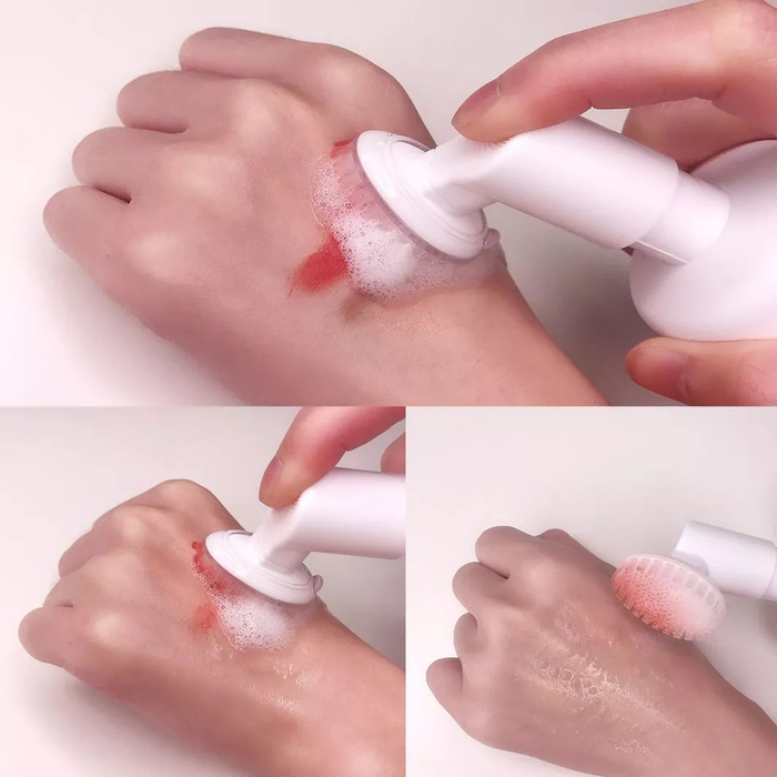 这一款洁面采用医用级无菌硅胶刷头,Luna洁面刷同材质,对刷头进行了二次升级,粗、细刷毛结合,更软、更细腻。