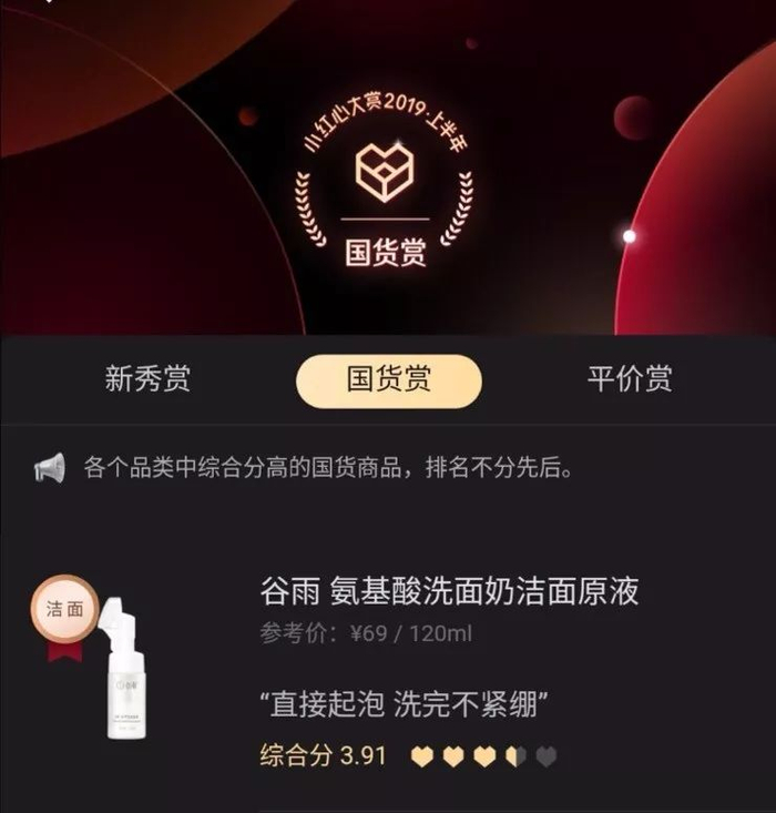虽然谷雨是一个小众的国货品牌,但在小红书和天猫上,这一款洗面奶却是口碑爆棚,上新不久就卖断货!而且这款洁面还获得了2019年小红心大赏榜单国货赏。