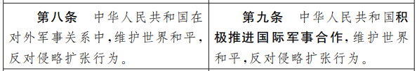 在对外军事关系方面,草案补充了“人类命运共同体”的概念。